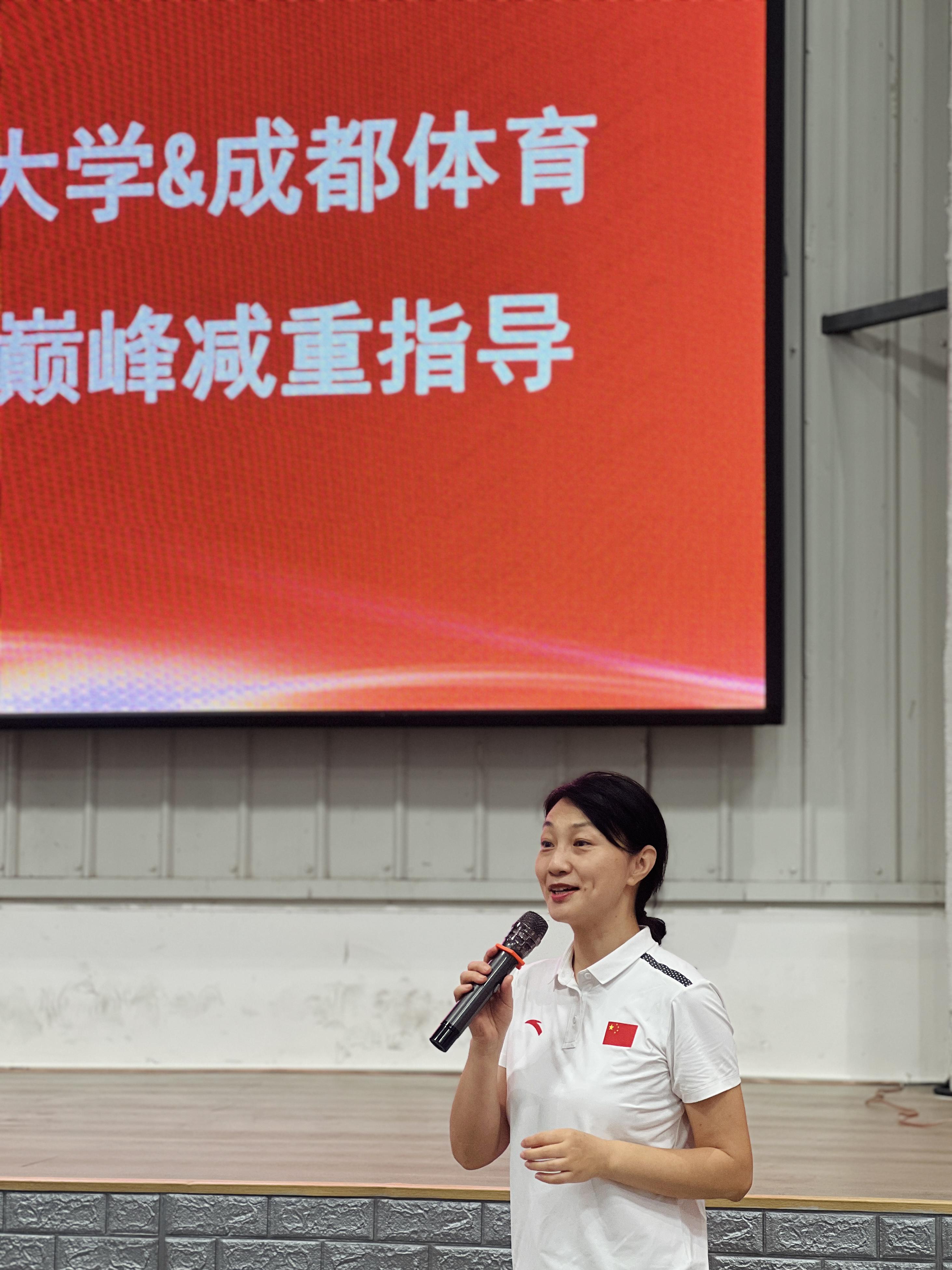 天游ty8线路检测中心官网21级大众健身方向学生沉浸式体验了两小时的巅峰减重暑期训练营训练课程,包括有氧团操、器械训练、羽毛球等课程板块和内容,并对巅峰减重课程理念和设计,以及如何做到既有趣味性又保证安全性,达到科学高效的减重效果等,进行了提问和解答,互动踊跃。与此同时,我院领导与专项教师同巅峰减重有限公司创始人冯磊、西南区域总经理张闫蒲及技术总监刘祥雲进行了座谈,强调校企合作、校企共建的核心思想。下午1点,成体师生在基地大厅聆听巅峰减重基地创始人冯磊的精彩分享,从专业素养和工作态度等方面介绍企业用人需求。