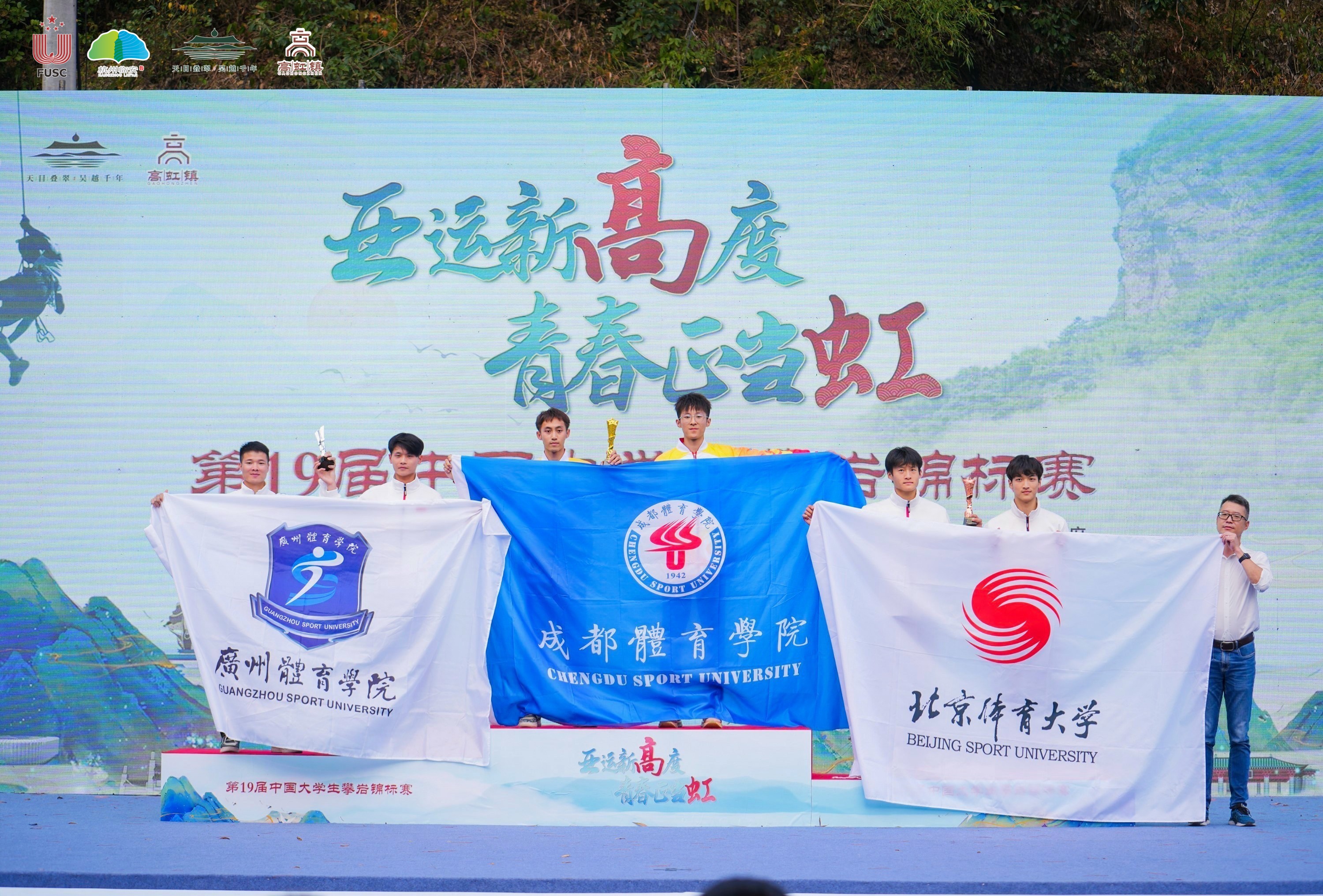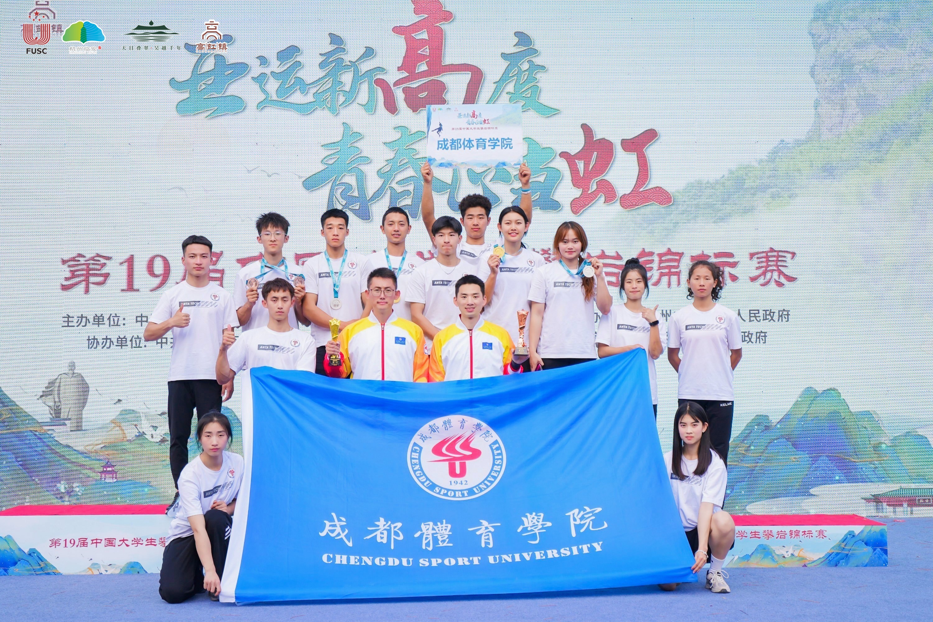 我校攀岩代表队在学校各级领导的关怀支持下,在四天的比赛里,朱昌华、欧志勇带领队员们顶住压力、顽强拼搏,最终获得了2金、3银、2铜,以及丙组男子团体第一和丙组女子团体第三的优异成绩,金牌数及奖牌数位列北京体育大学、上海体育大学等体育院校之首,朱昌华老师获得了优秀教练员的称号。