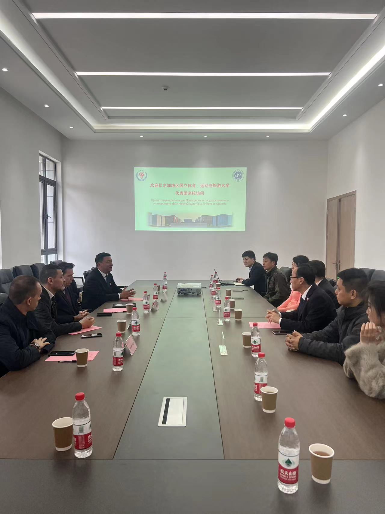 随后双方进行了会议座谈,在交流会当中,就专业人才培养模式,专业课程体系,专业实践教学体系与经验;一线专家参与专业课程建设经验等方面内容进行了深入的探讨和交流。经过双方交流沟通,希望在师生互访、交换留学、科研合作、项目竞赛训练等方面加强合作。双方约定将以2024年伏尔加地区国立体育、运动与旅游大学50周年校庆为契机,开展更为紧密且实效的交流访问活动。