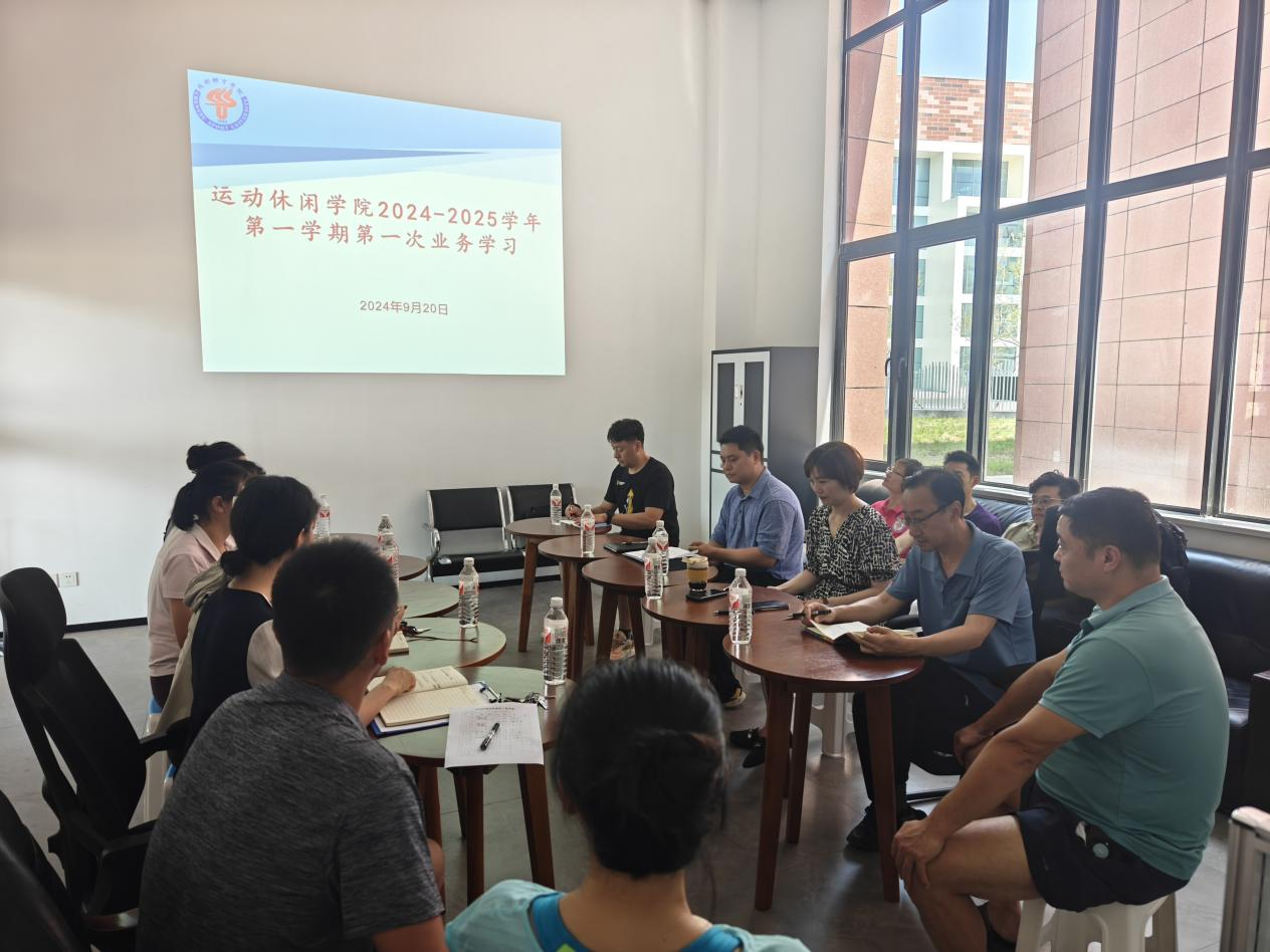 2024年9月20日,天游ty8线路检测中心官网在运动休闲馆休闲体育系会议室组织开展2024-2025学年第一学期第一次业务学习。会议由副院长蒋书君主持,学院全体教师参加。