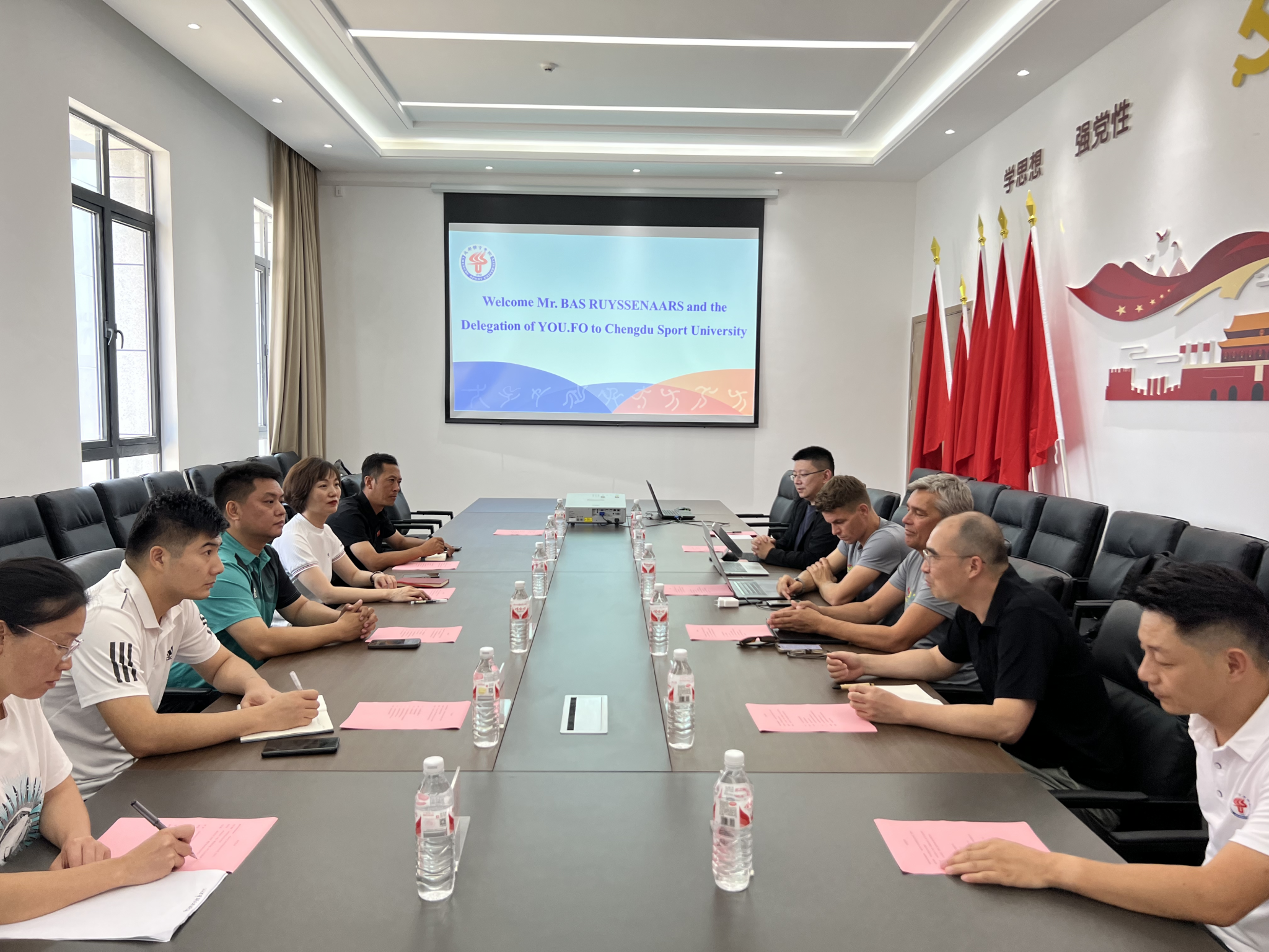 2024年9月26日下午,YOU.FO飞环世界联合会主席Bas Ruyssenaars先生及其团队一行到访天游ty8线路检测中心官网,就飞环运动的推广、教学合作及未来发展规划进行了深入探讨。交流会议由副院长蒋书君主持,学院党委副书记樊莉、国合处综合科、休闲体育系、社会体育指导与管理系、学管办、院办相关负责人参会。