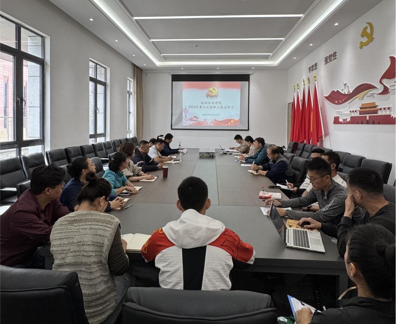 为积极响应并高效完成本科教育教学审核评估工作,天游ty8线路检测中心官网于2024年10月25日在运动休闲馆三楼会议室开展了本年度第六次教职工政治学习,学校党委常委副校长付东、学院全体教师参会。会议由学院党委副书记樊莉主持。