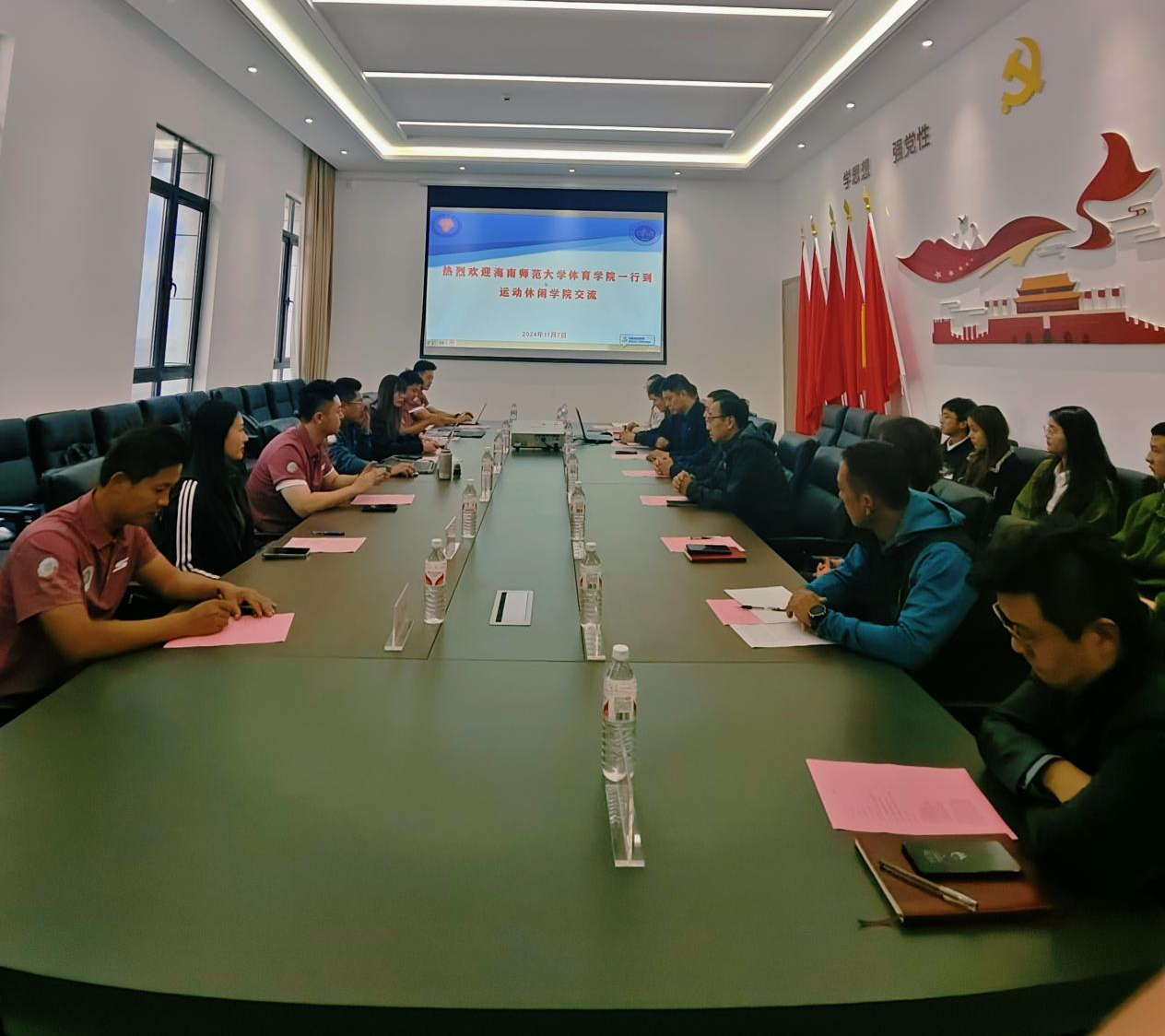 2024年11月7日下午,海南师范大学体育学院社会体育系到天游ty8线路检测中心官网交流,学院领导、各系、学管办、学院办公室相关负责人出席了此次交流会。此次交流旨在增进双方在教学与研究领域的了解与合作。
