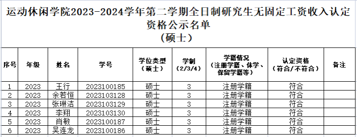 天游ty8线路检测中心官网2023-2024学年第二学期全日制研究生无固定工资收入认定资格公示名单 (硕士)
