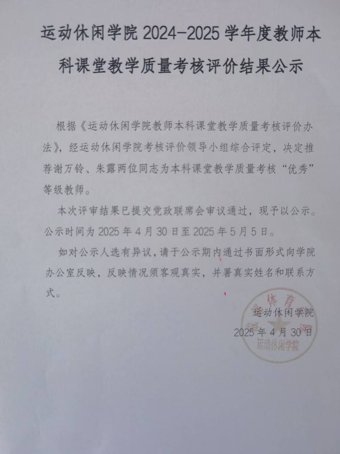 天游ty8线路检测中心官网2024-2025学年度教师本科课堂教学质量考核评价结果公示